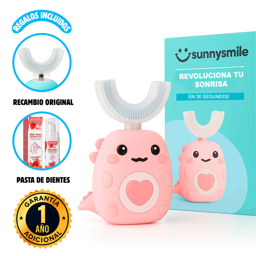 La tecnología ultrasónica de SUNNYSMILE™ limpia todos los dientes en solo 45 segundos con cerdas suaves y un diseño en forma de U, protegiendo las encías y convirtiendo el cepillado en un momento rápido y divertido para los niños.